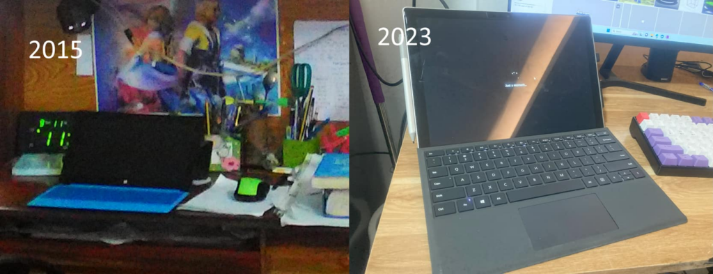 I have owned laptops, tablets, desktop computer, drawing tablet, gaming consoles, handheld consoles,… But what I found was that the best tool for the work I do is not always the highest spec’d devices, but the one that is the most convenient.