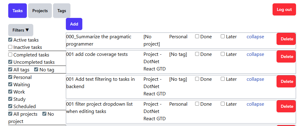 I decided that this version would be the last, as it is built as well as possible for easy maintenance and feature implementation. My experience in the past 5 months has been great. Finally the project is ready to use and I have migrated all my data from my previous task manager to the new one.